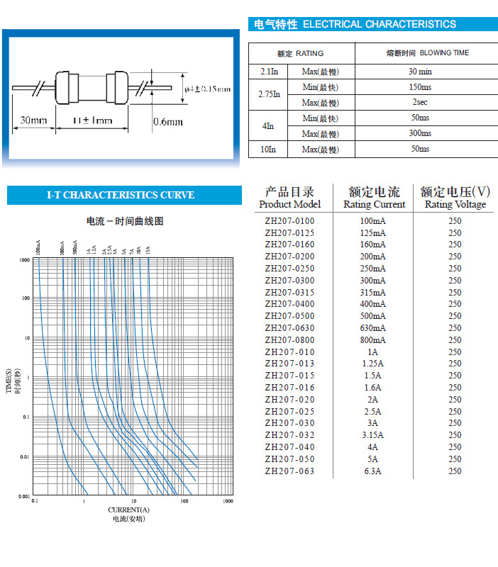 • 玻璃管保险丝(速断型)